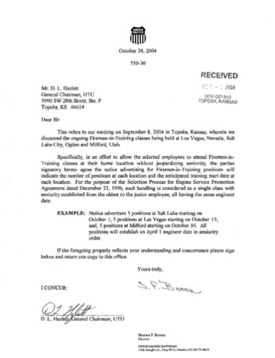Carrier: UP; Craft: ; District: Eastern, Eastern / Zone 100, Eastern / Zone 200, Eastern / Denver Hub, Eastern / Salina Hub, Eastern / Salt Lake Hub, Eastern / Portland Hub Zone 3, Northwest (Po...