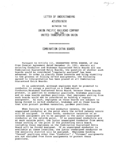 Carrier: UP; Craft: ; District: Eastern, Eastern / Zone 100, Eastern / Zone 200, Eastern / Denver Hub, Eastern / Salina Hub, Eastern / Salt Lake Hub, Eastern / Portland Hub Zone 3;